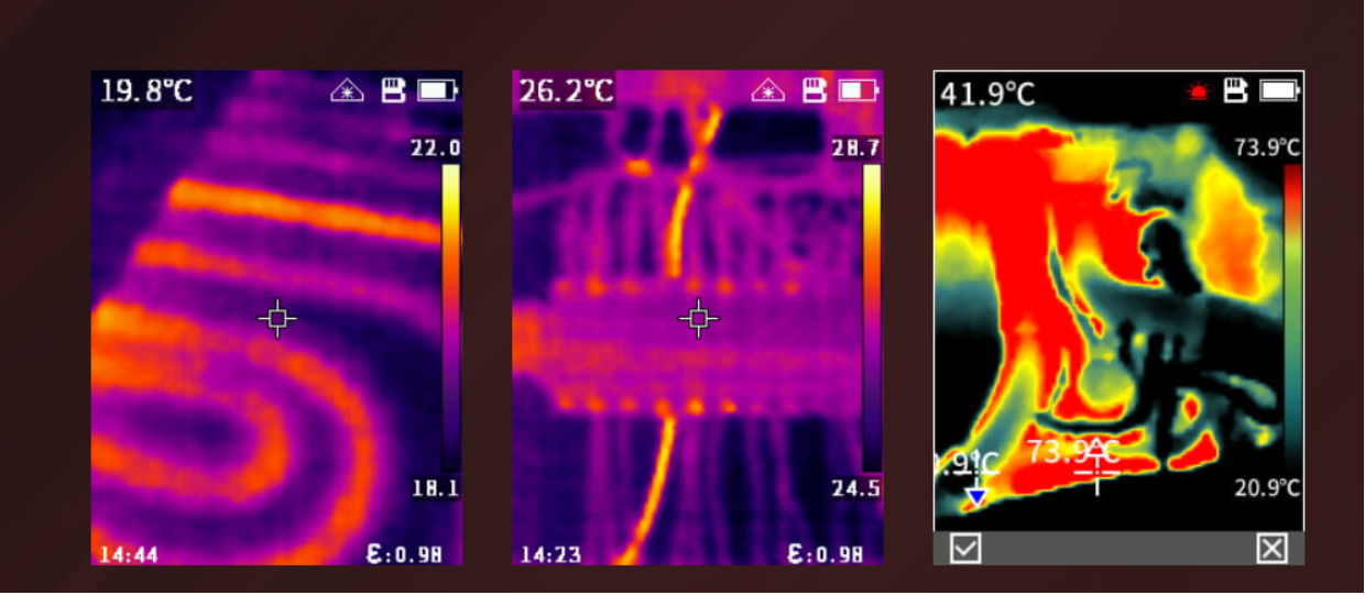 Khởi động và hiển thị hình ảnh phóng xạ đầy đủ ngay lập tức Cảnh báo nhiệt độ tối đa và tối thiểu trên toàn màn hình. Màn hình lớn 2,4 inch, LCD màu 240×320 pixel