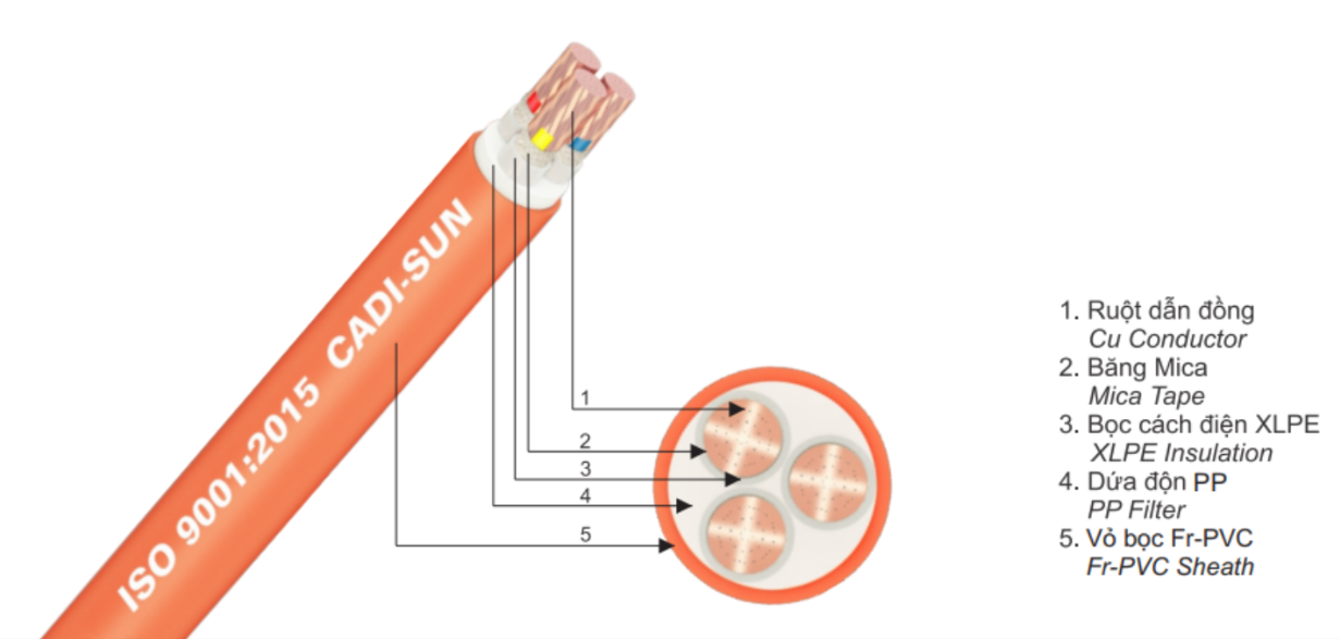 - Quy cách: Cu/Mica/XLPE/LSZH.