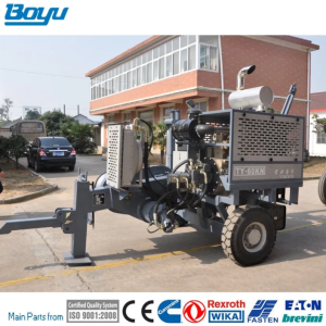 Máy tời cáp thủy lực TY60 được sử dụng cho các khu vực đồi núi để kéo căng cáp điện 220kV hoặc thể sử dụng để kéo cáp quang OPGW hoặc ADSS ở nhiều địa hình khác nhau.